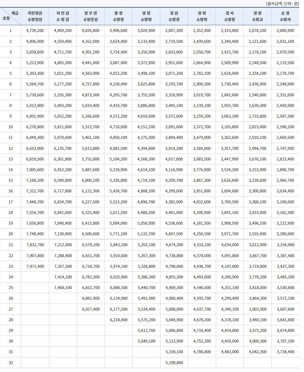 경찰·소방 공무원 봉급표